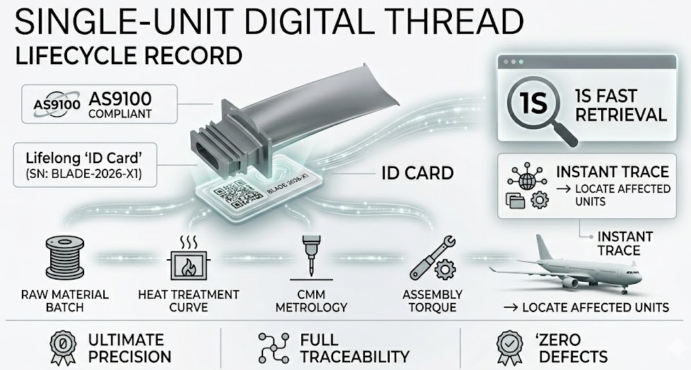 Issue a lifelong 'ID card' for every blade. Meets the strict traceability requirements of AS9100.